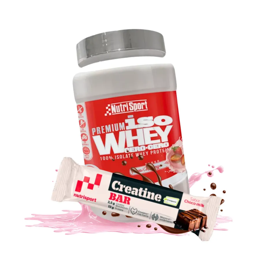 Este Perfect Match Love Recovery combina dos productos que se complementan tanto a nivel nutricional como emocional: una proteína aislada de alta calidad y una barrita funcional con creatina, en los dos sabores más asociados al placer y al amor: fresa y chocolate.