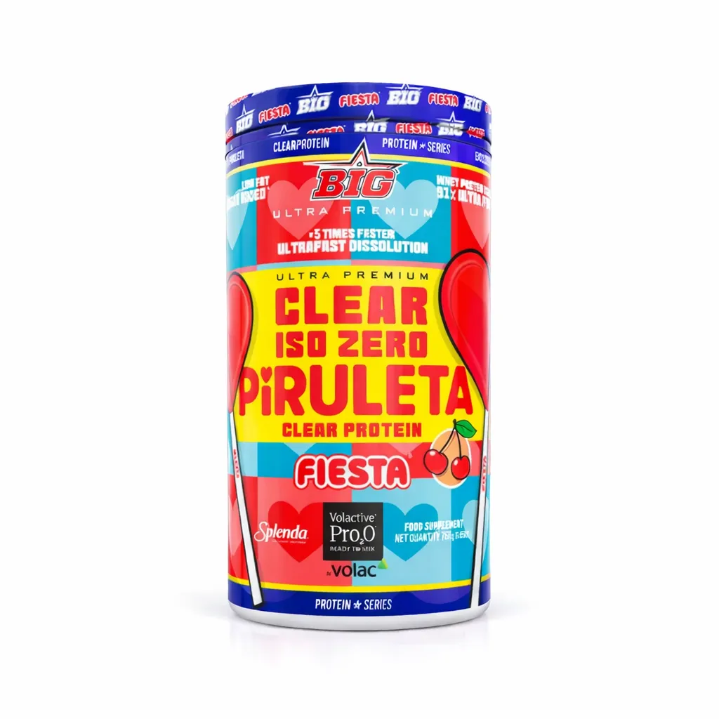 BIG ULTRA PREMIUM CLEAR ISO ZERO Piruleta 750g es una proteína aislada de suero en formato “clear”, diseñada para quienes buscan una alternativa ligera y refrescante a los batidos tradicionales. Elaborada con materia prima de alta calidad Volactive® Pro2O® Ready to Mix, ofrece una excelente solubilidad y una textura similar a una bebida isotónica.