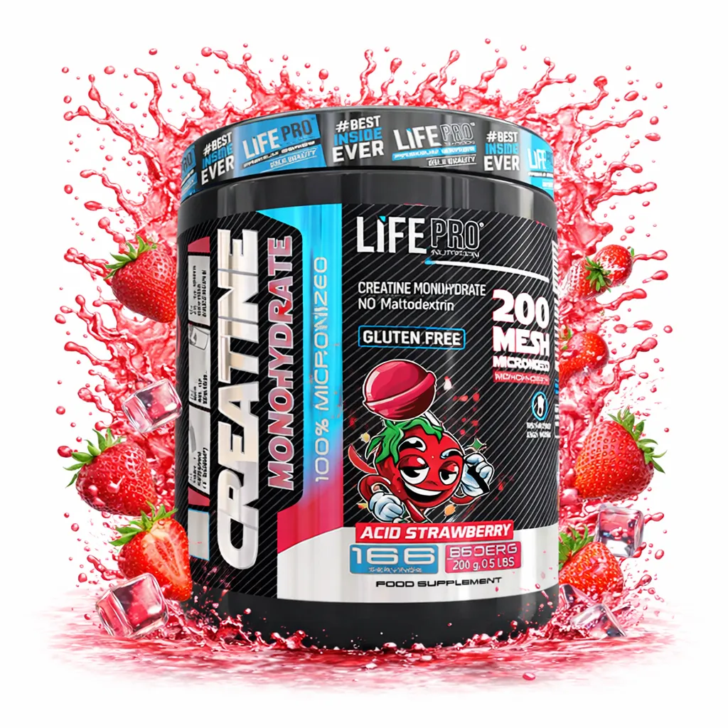 Life Pro Creatine 200 Mesh es una creatina monohidrato micronizada de alta pureza, diseñada para mejorar el rendimiento físico, la fuerza y la recuperación muscular. En Vital Fit la seleccionamos por su micronización avanzada 200 mesh, que facilita la disolución, y su formato con sabor, ideal para una toma más cómoda y agradable.