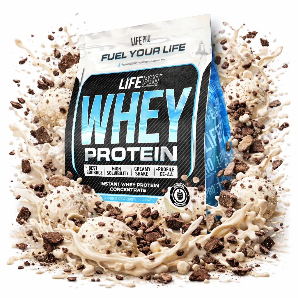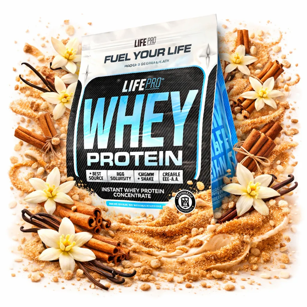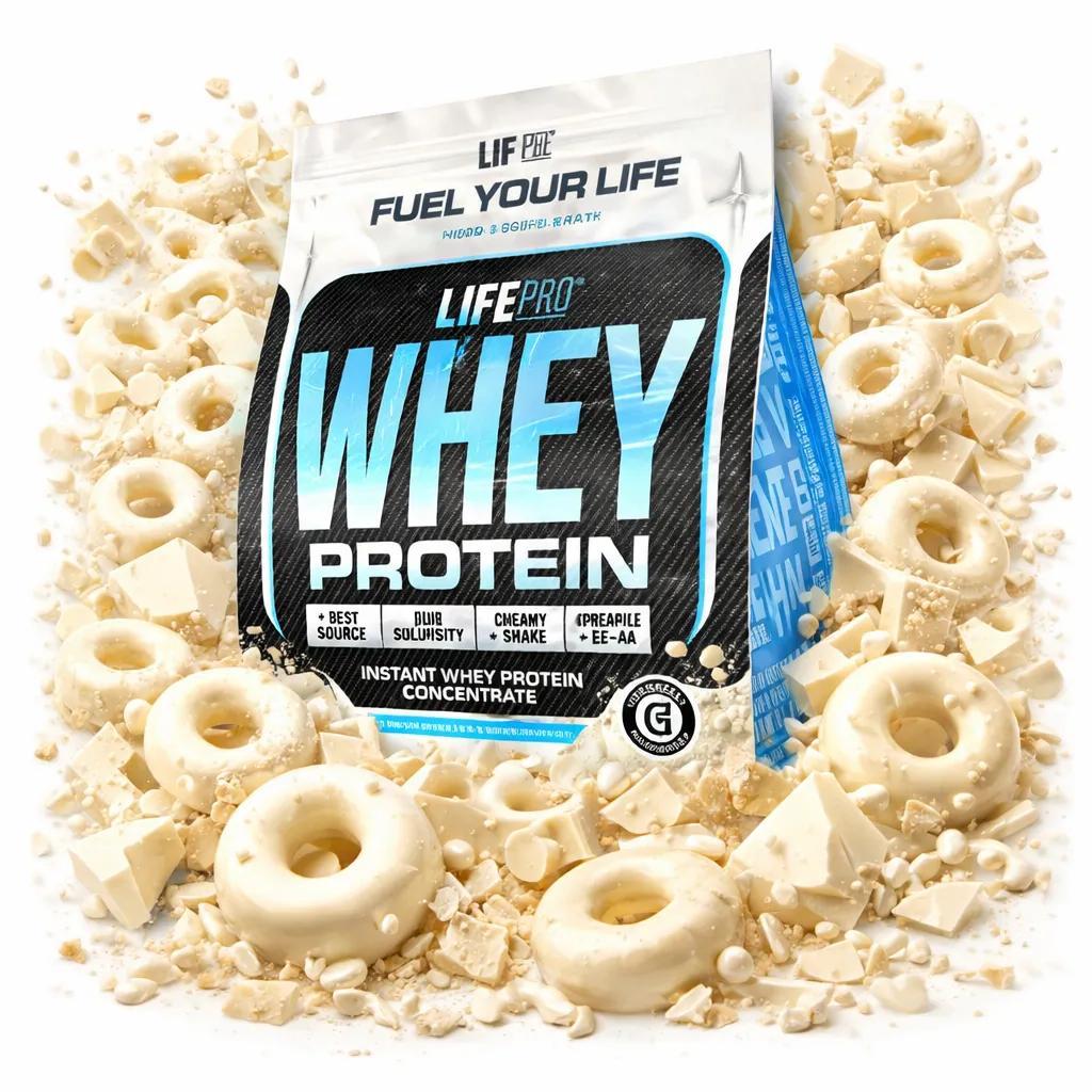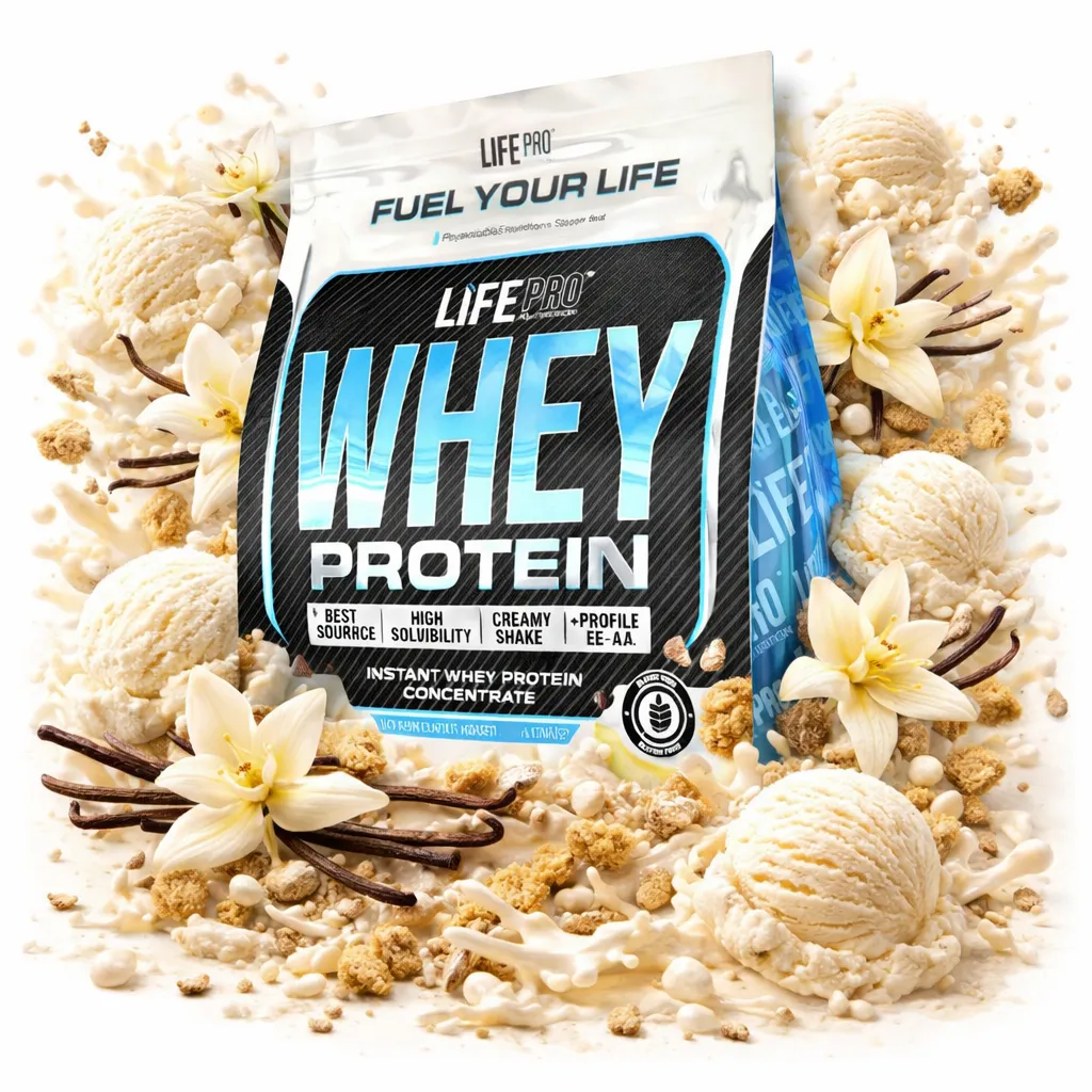 Life Pro Whey: proteína de suero (78% pureza) con enzima lactasa. Ideal para ganar músculo, mejorar la recuperación y disfrutar de un batido delicioso.