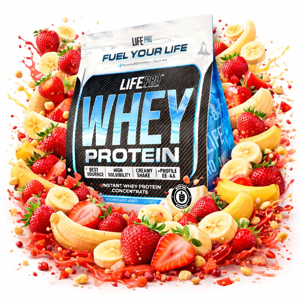 Life Pro Whey: proteína de suero (78% pureza) con enzima lactasa. Ideal para ganar músculo, mejorar la recuperación y disfrutar de un batido delicioso.